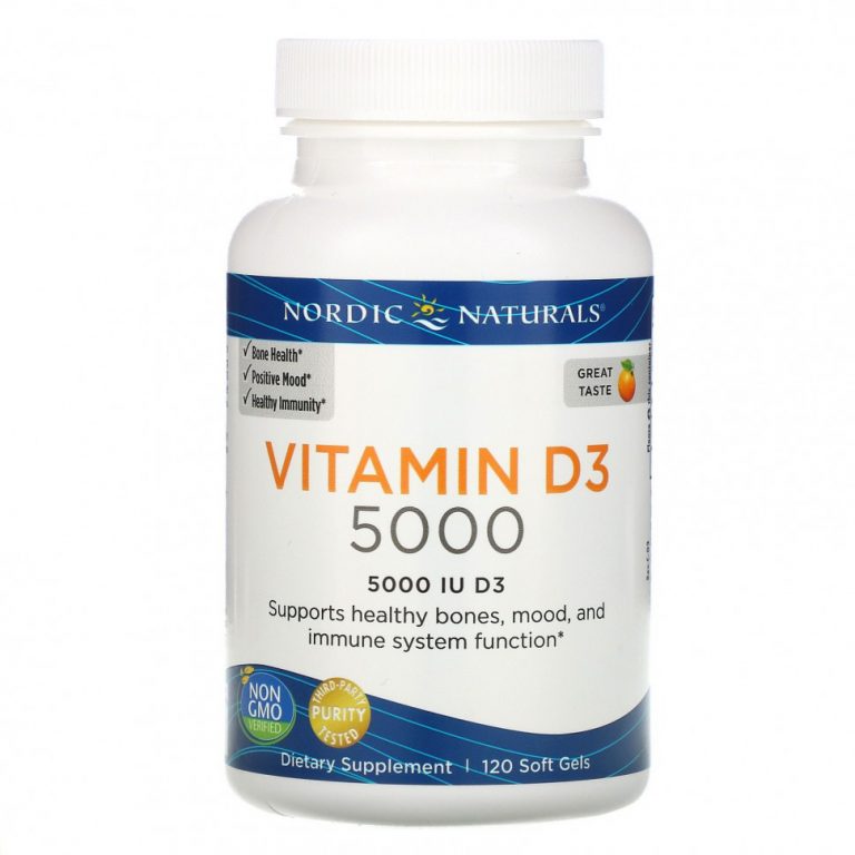 Nordic Naturals, Витамин D3 5000, со вкусом апельсина, 5000 МЕ, 120 мягких желатиновых капсул