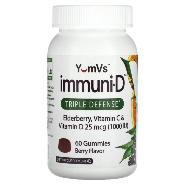 YumV’s, бузина, витамины C и D, тройная защита, ягодный вкус, 25 мкг (1000 МЕ), 60 жевательных мармеладок