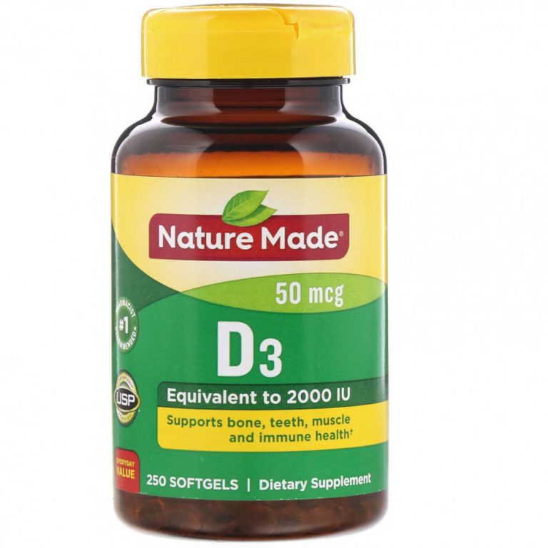 Nature Made, D3, 2000 МЕ, 250 мягких желатиновых капсул