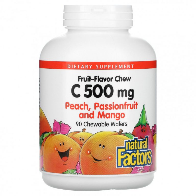 Natural Factors, Жевательная таблетка со вкусом фруктов, витамин C, персик, маракуйя и манго, 500 мг, 90 жевательных вафель