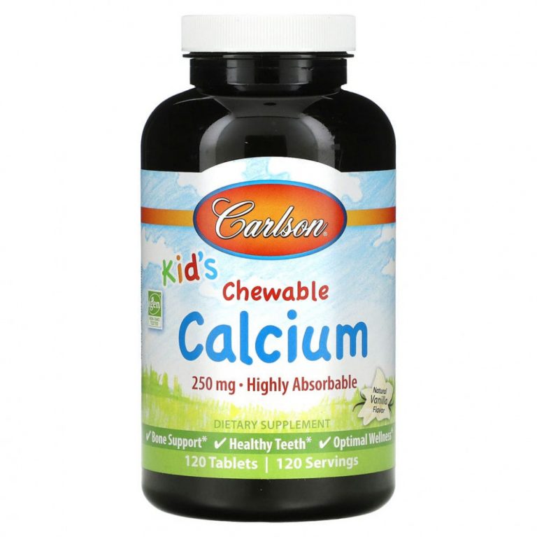 Carlson Labs, Жевательные таблетки с кальцием для детей, с натуральным ванильным вкусом, 250 мг, 120 таблеток
