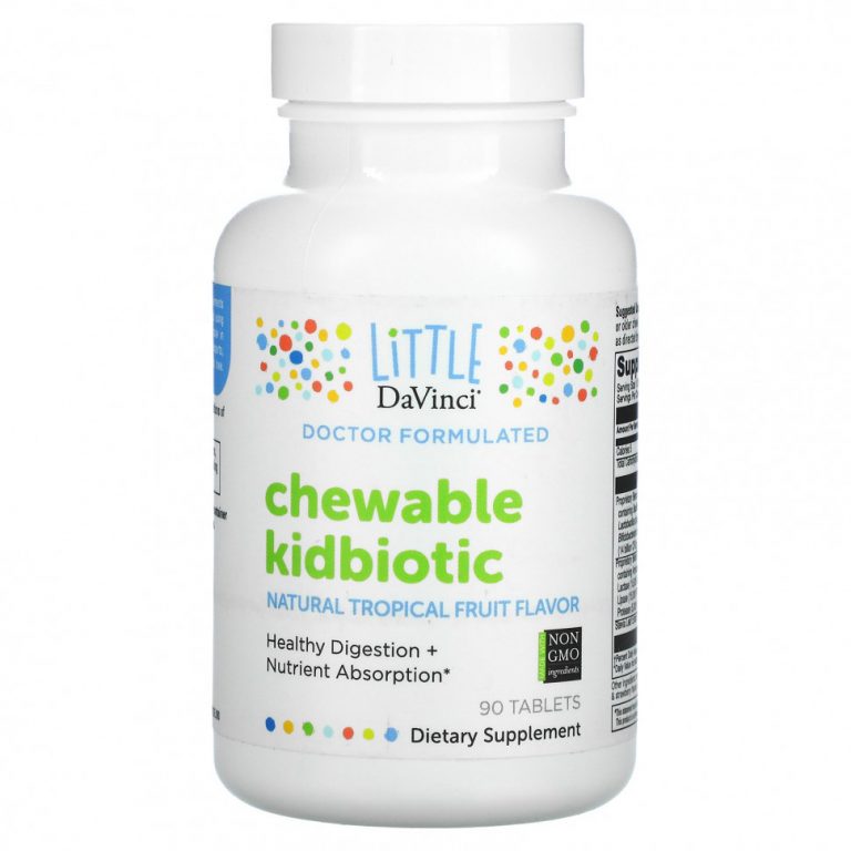 Little DaVinci, жевательные пробиотики для детей, натуральный вкус тропических фруктов, 90 таблеток