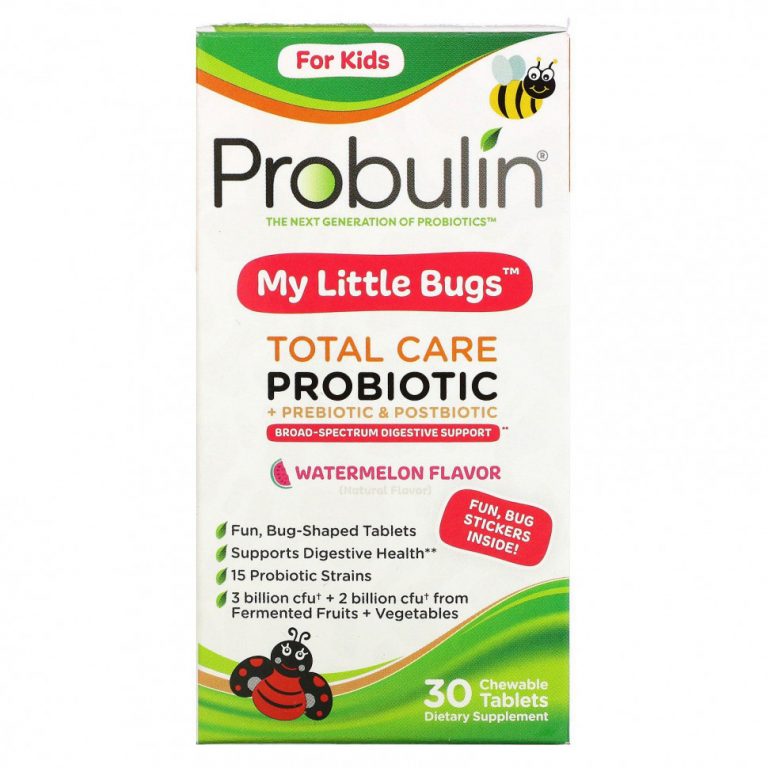 Probulin, для детей, My Little Bugs, пробиотик Total Care + пребиотик и постбиотик, арбуз, 30 жевательных таблеток