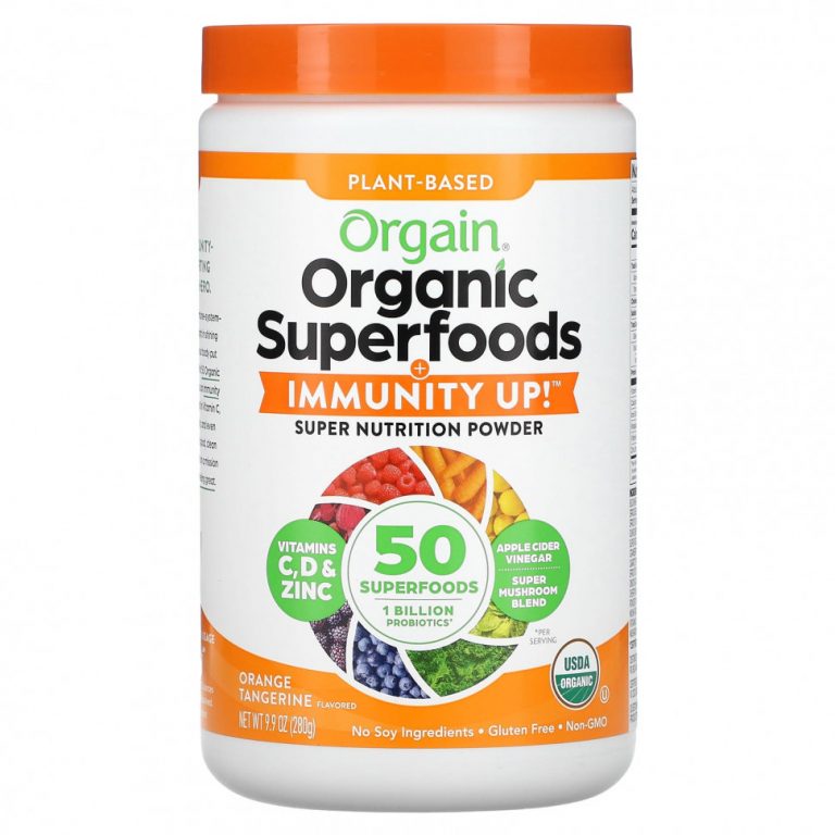 Orgain, Растительный, органические суперфуды и иммунитет, апельсин и мандарин, 280 г (9,9 унции)