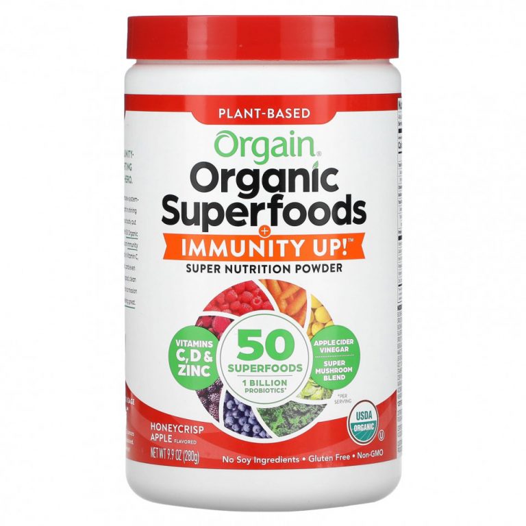 Orgain, Органические суперфуды на растительной основе + Immunity Up, хрустящее яблоко, 280 г (9,9 унции)