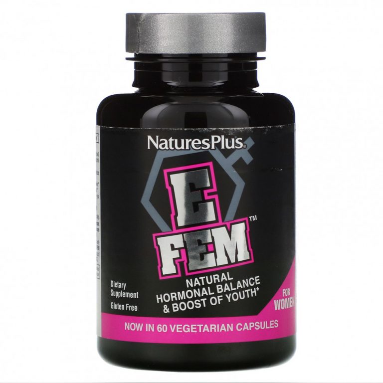 NaturesPlus, E Fem для женщин, естественный гормональный баланс и поддержка молодости, 60 вегетарианских капсул