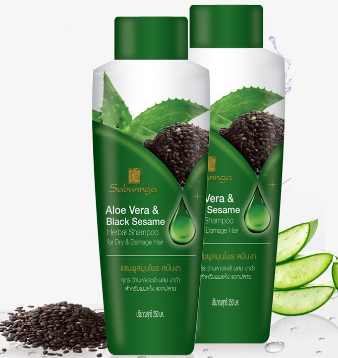 Шампунь для сухих волос с алоэ вера и маслом черного кунжута Sabunnga 250 мл