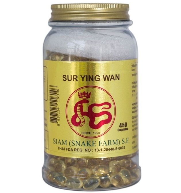 Змеиный препарат для лечения дыхательных путей на жире сиамской кобры Sur Ying Wan 450 капсул