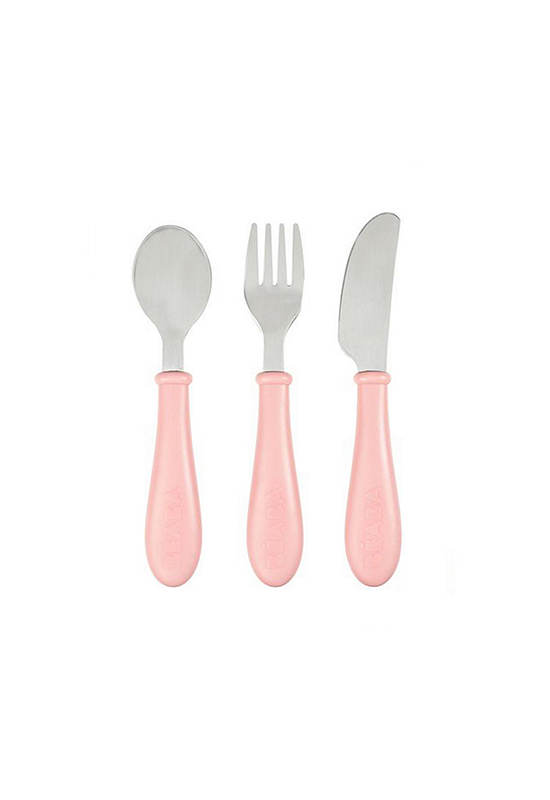 BEABA Stainless Steel Training Cutlery Knife / Fork / Spoon — Vintage Pink