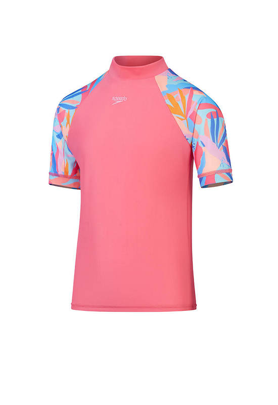 SPEEDO Girls Rashguard Printed Short Sleeve Sun Pink — SP111SP802DTTH