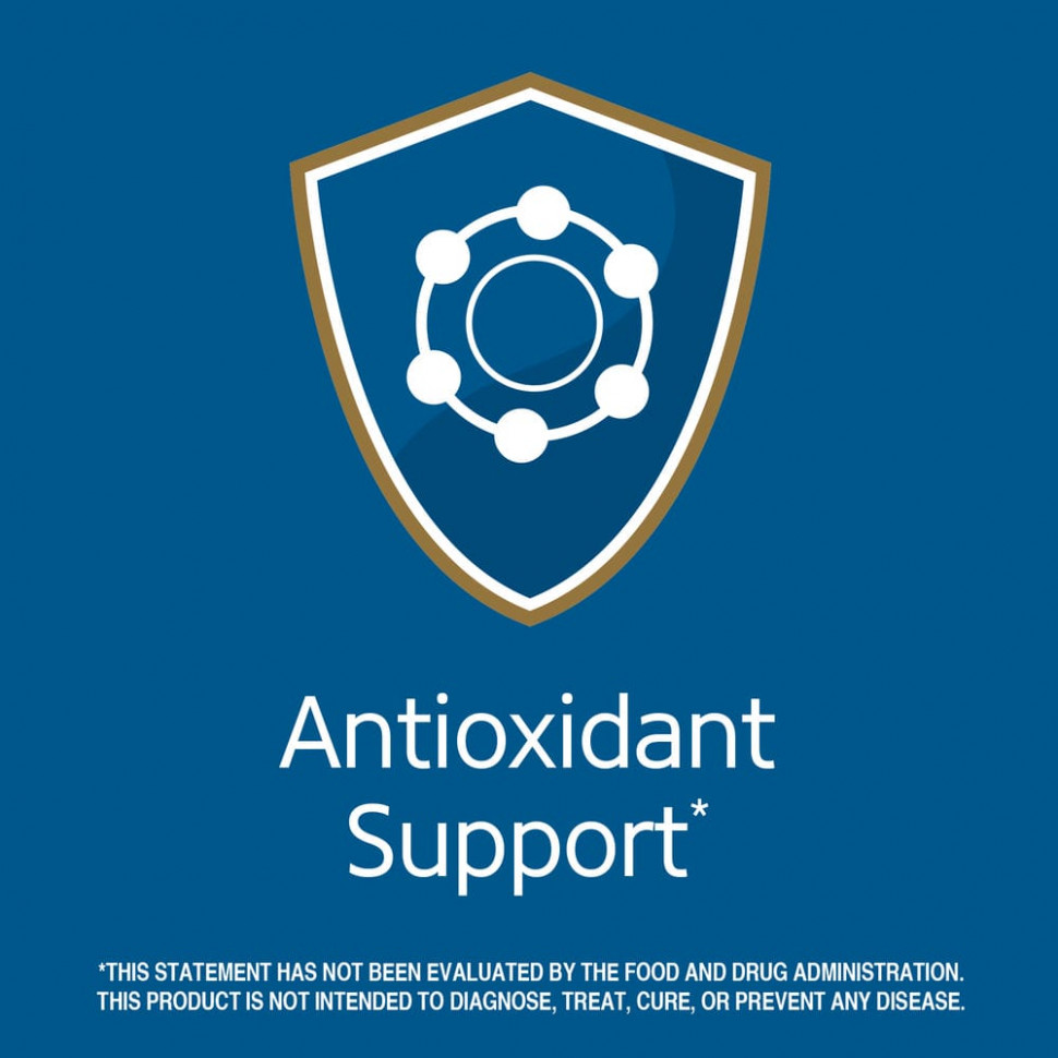 Витамины A, C и E в сочетании с необходимыми минералами селеном, цинком, медью и марганцем образуют комплексную антиоксидантную формулу.