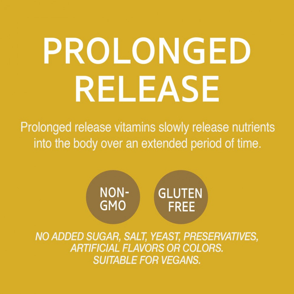 Витамин B-12 (цианокобаламин) поддерживает нервные клетки и клетки крови. За счет замедленного высвобождения витаминов питательные вещества медленно усваиваются организмом в течение продолжительного периода времени.