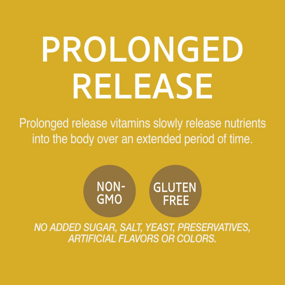 Витамины группы B взаимозависимы, а их функции переплетаются. Они помогают преобразовывать пищу в энергию, а также поддерживать здоровье нервной системы и тканей тела. За счет замедленного высвобождения витаминов питательные вещества медленно усваиваются организмом в течение продолжительного периода времени.