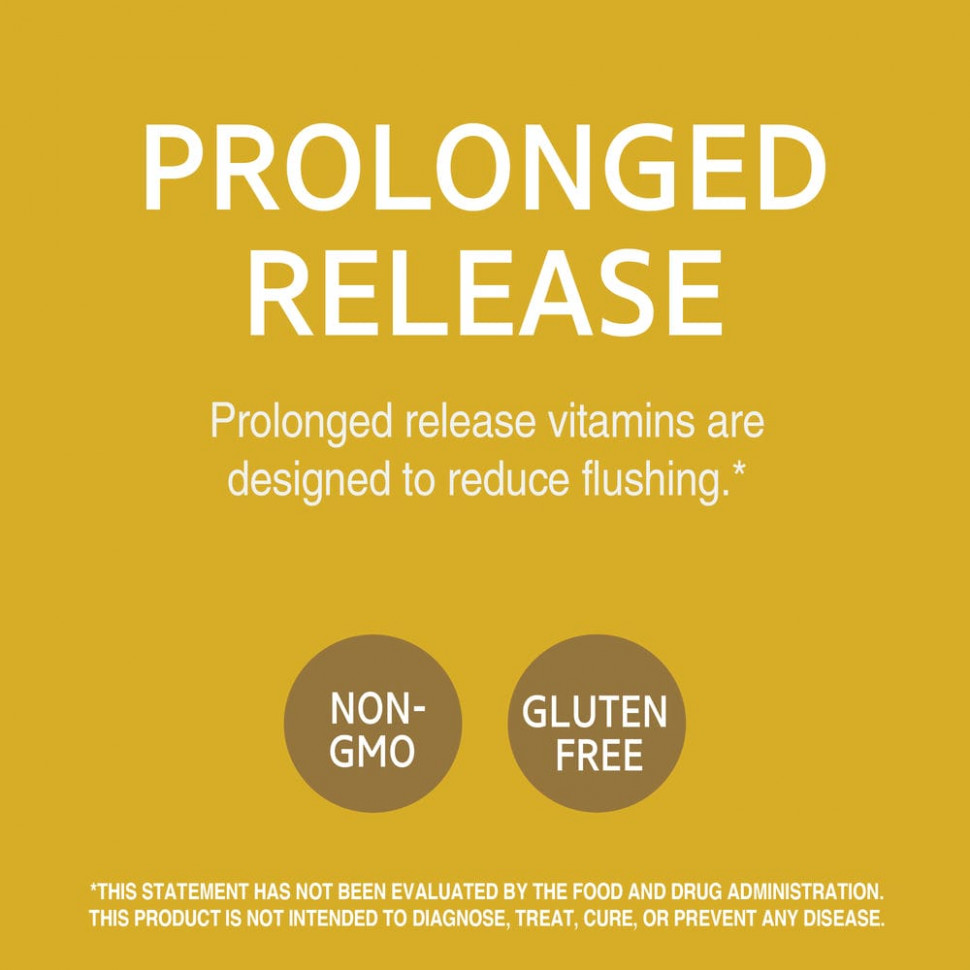 Ниацин (витамин B3) поддерживает энергетический обмен, здоровье сердца и нервной системы. За счет замедленного высвобождения витаминов питательные вещества медленно усваиваются организмом в течение продолжительного периода времени.