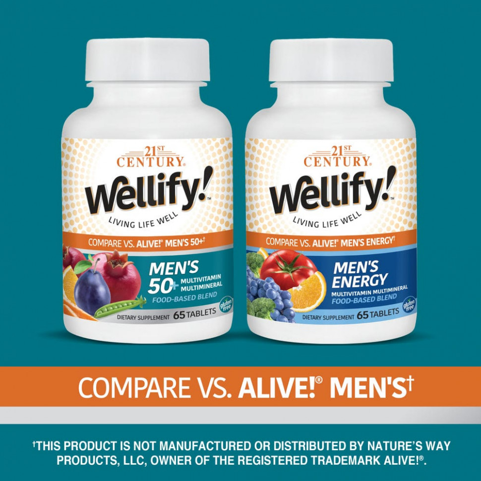 Жить с заботой о своем здоровье и благополучии — значит жить хорошо! Мультивитамины и мультиминералы для мужчин старше 50 лет от Wellify!™ помогают поддерживать общий уровень энергии, иммунитет, здоровье сердца, глаз и мышц.
