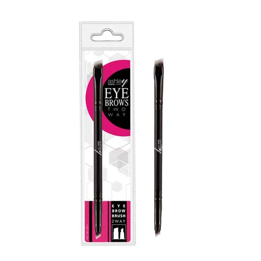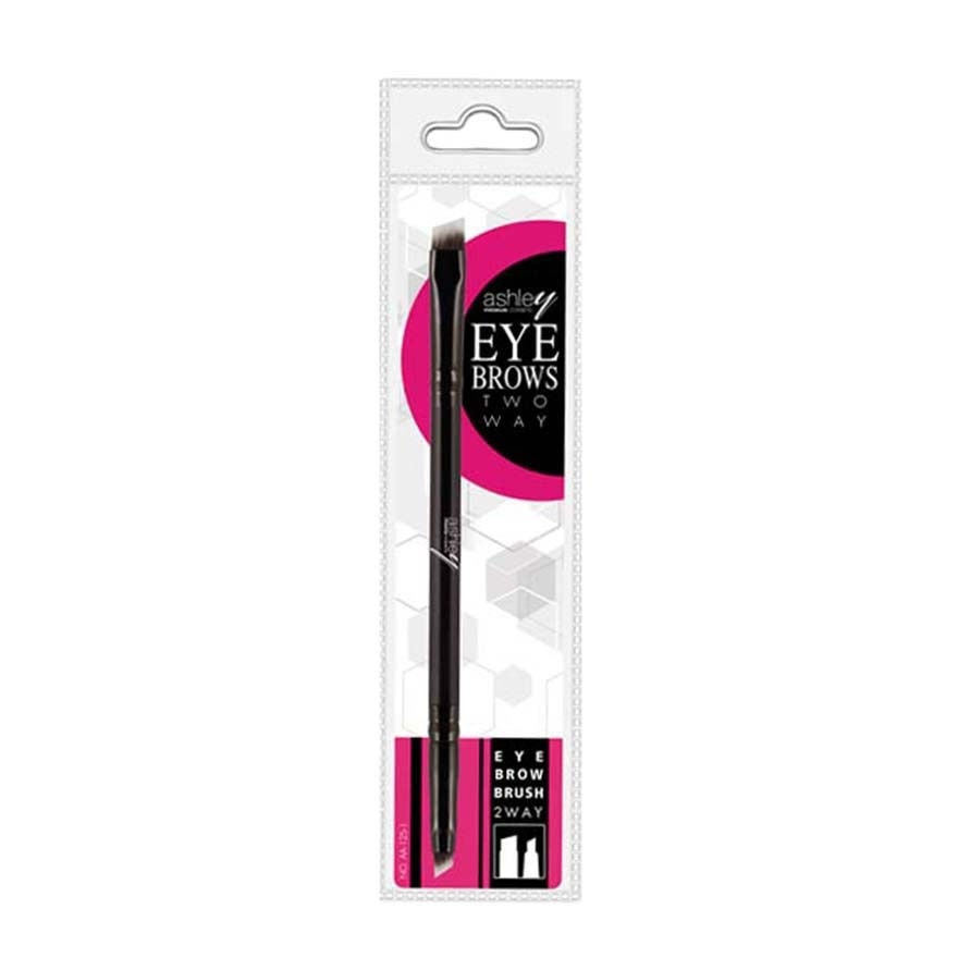 A dual-sided brow brush with a perfectly angled synthetic bristles on one end and a spoolie brush for grooming and blending on the other.