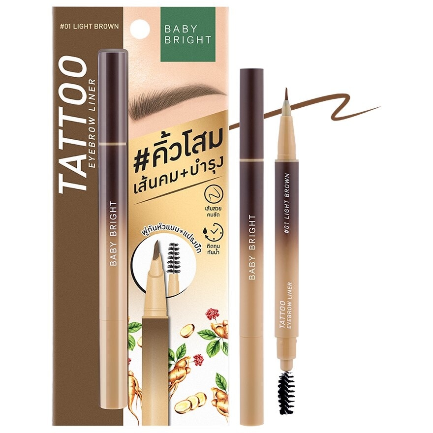 Elevate the dimension of your eyebrows with Baby Bright Tattoo Eyebrow Liner This long lasting waterproof and sweatproof liner is crafted to create natural looking results with its easy to use angled tip and quick drying formula Infused with Ginseng Root Extract rich in Ginsenosides that act as antioxidants to nourish and strengthen your brow hairs this liner also reduces fallout and promotes new growth Achieve naturally defined eyebrows that last all day with this innovative brow liner Product Usage Remove the cap and shape your brows using the spoolie brush as desired Fill in your brows using the liner side applying the product in the direction of hair growth for a natural looking result Recap the product after each use
