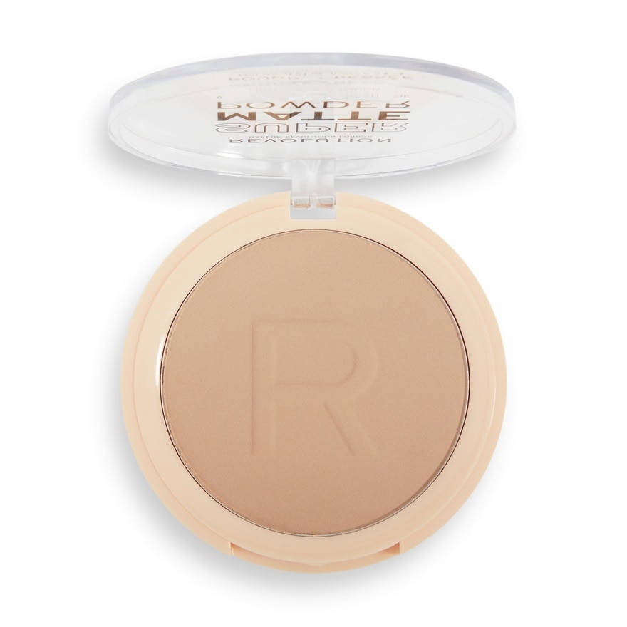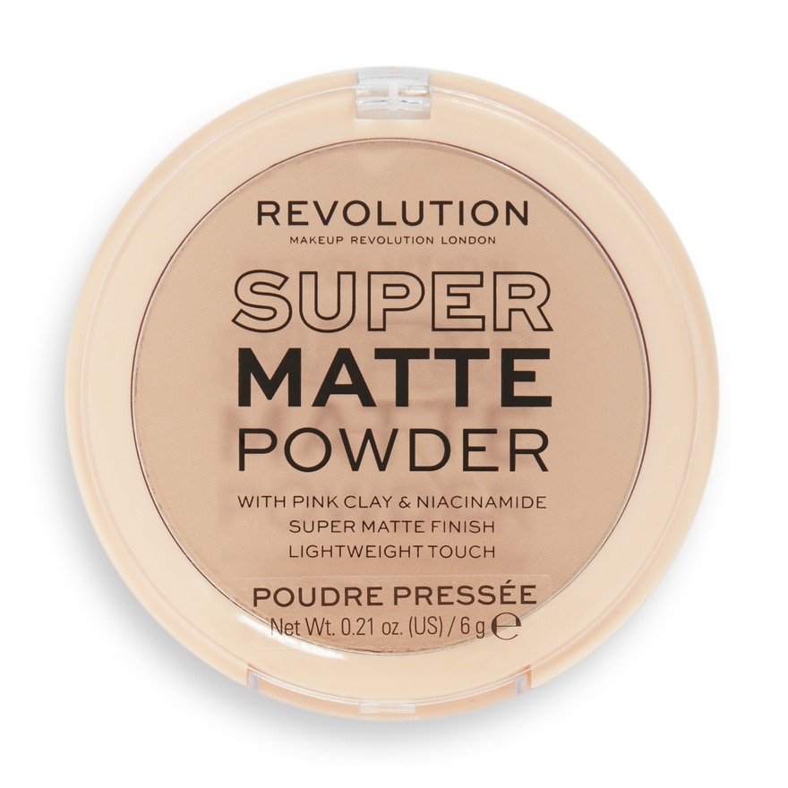 Calling all matte babes! Meet your next matte made in heaven with the Revolution Super Matte Pressed Powder. Designed with a team matte mantra in mind — because not everyone can do dewy! The perfect partner for any matte base. Available in Launching in 12 shades to help you achieve the perfect matte finish. With a range of undertones this weightless, silky-soft powder blends effortlessly into skin for a natural finish that will help to keep midday shine at bay. Richly-pigmented, this weightless powder offers a matte solution for oily complexions, or for those who are team matte. Vegan. Cruelty free. Translucent — For all skin tones Vanilla — For light skin tones with a neutral undertone Beige — For light/medium skin tones with a neutral undertone Tan — For medium skin tones with an olive undertone