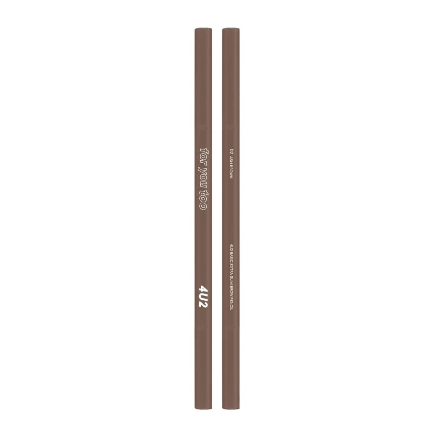 4U2 Basic Extra Slim Brow Pencil Our Slim Eyebrow Pencil allows for simple and smooth application with Extra Soft Slide Powder technology that allows for crisp lines. The Tip Slim design helps create realistic hairs and it comes with a brush on the other end for detailing and styling. Enriching ingredients such as Tocopheryl Acetate help to strengthen eyebrow hairs and reduce breakage How to Use Fill in the eyebrow with the pencil and then use the brush part to dust off the excess product