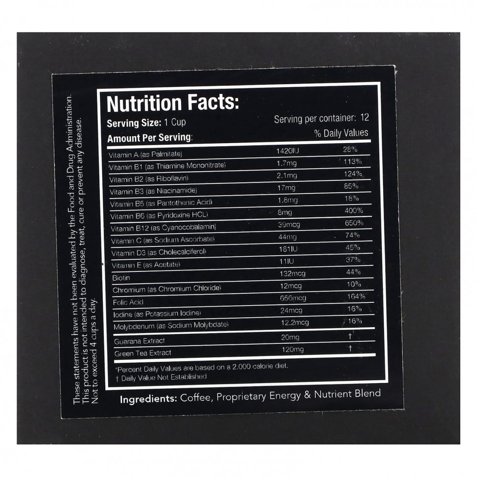Кофе с огромной суточной дозой мультивитаминов для дополнительной силы, концентрации и энергии. Используя наш чистый, натуральный кофеин из зеленого чая.