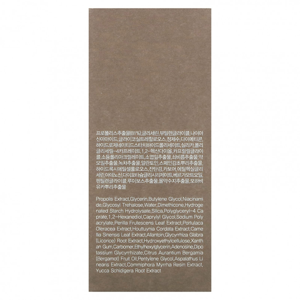 Экстракт прополиса, глицерин, бутиленгликоль, никотинамид, гликозил трегалоза, вода, диметикон, гидрогенизированный гидролизат крахмала, диоксид кремния, полиглицерил-4 ка прат, 1,2-гександиол, каприлилгликоль, полиакрилат натрия, экстракт листьев периллы (Perilla ocymoides), экстракт портулака огородного (Portulaca oleracea), экстракт хауттюйнии сердцевидной (Houttuynia cordata), экстракт листьев зеленого чая (Camellia sinensis), аллантоин, экстракт корня солодки (Glycyrrhiza glabra), гидроксиэтилцеллюлоза, ксантовая камедь, карбомер, этилгексилглицерин, аденозин, дикалия глицирризат, Citrus aurantium bergamia bergamot), масло плодов, пентилен гликоль, экстракт ройбуша (Aspalathus linearis), экстракт камеди коммифоры мирровой (Commiphora myrrha), экстракт корня юкки Шидигера (Yucca schidigera)