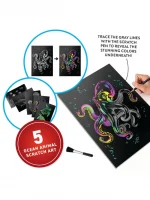 Explore the depths of the ocean and beyond with this interactive gift set of ABACUS, featuring a 96 page DK book featuring hundreds of marine animals! Swim with sharks, dive with penguins, and even graze along jellyfish as we take a deep dive into the mysterious world below the sea. Use the included VR goggles to activate over 30+ virtual reality experiences. Discover marine life, habitats, migrations, coral reefs, conservation efforts and more! This virtual reality book and gift set also includes a set of scratch art, including scratch tools and a brush to create your very own marine animal art!
