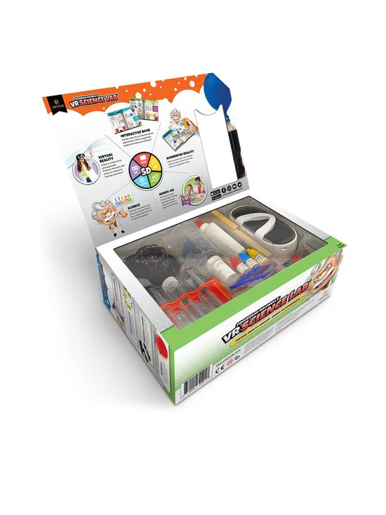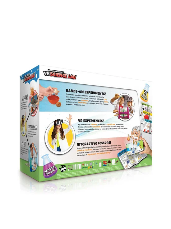 Discover 25 of your favorite science projects with step by step instructions that come alive in augmented and virtual reality with Professor Maxwell’s VR Science Lab by ABACUS! This comprehensive STEAM science kit for kids explores the wonders of science by combining physical science experiments with immersive digital technology! Watch as Professor Maxwell appears on the book to introduce the projects, then follow each step as pictures turn into videos to guide you through each experiment. Then, put on the VR goggles and teleport to a virtual world to connect the science with real life examples! Learn about thrust while making a balloon rocket, discover density by making a lava lamp, and even fly over an active volcano in a helicopter virtual reality!