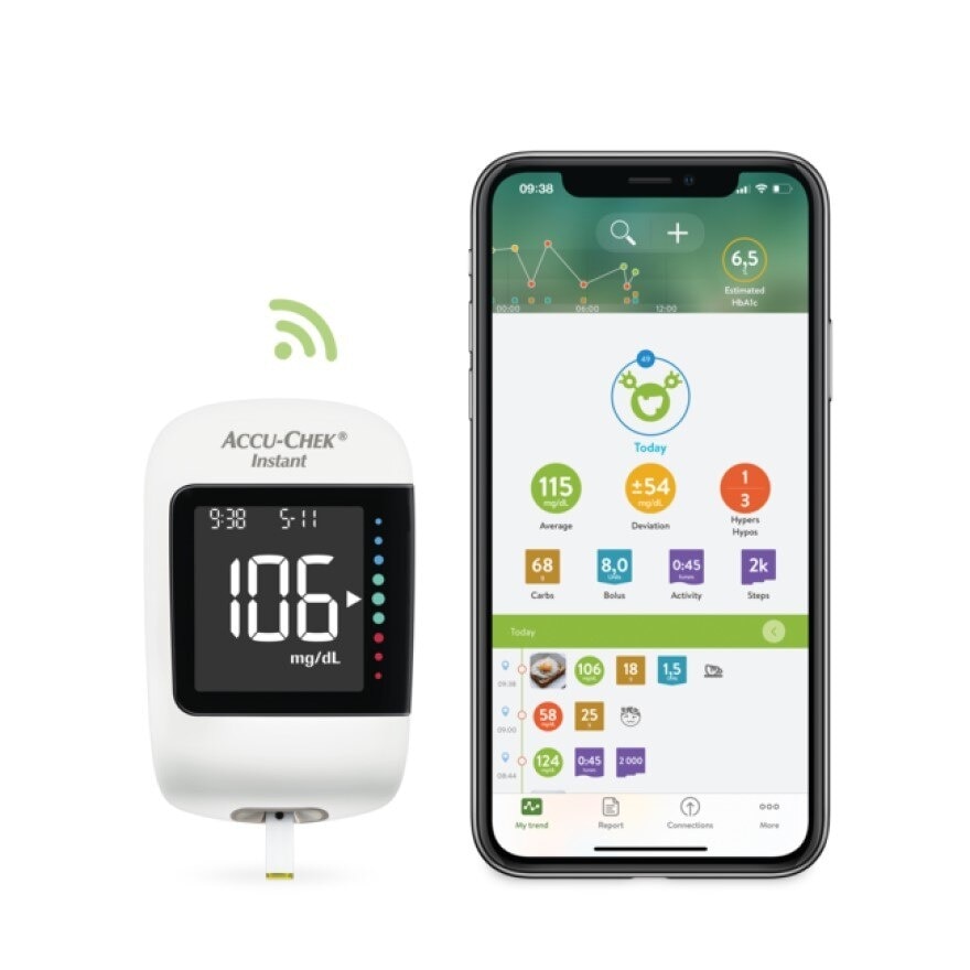 Accu-Chek Instant Meter Set For Diabetes Patients Product description Blood volume (0.6 uL ) Measuring time less than 4 sec Target range indicator: Scale with defaulted setting Test averages 7, 14, 30 and 90 days Wireless Bluetooth to connect to mobile devices Authentic Accu-Chek product from legal manufacturer Life time warranty ใบอนุญาตเลขที่ ฆพ1981/2564