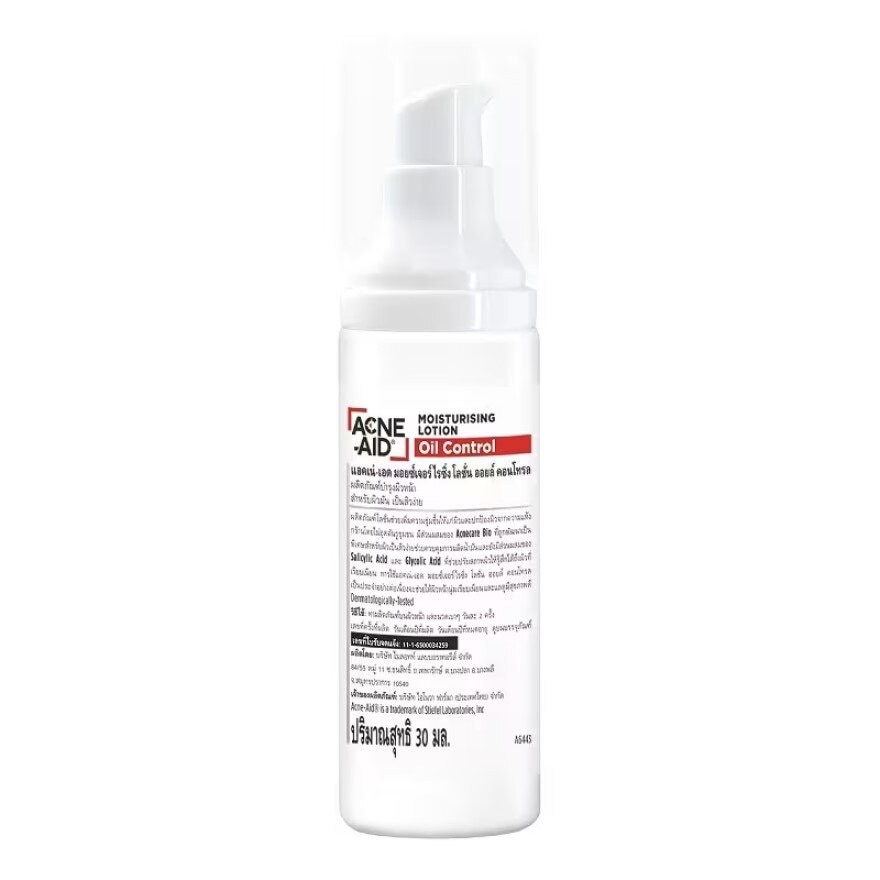 Acne-Aid Moisturising Lotion Oil Control For oily, acne prone skin This lotion hydrates amp; protects the skin from drying out, without clogging the pores. It contains Acnecare Bio, specially developed for acne prone skin to help regulate oil production. It also contains Salicylic acid and Glycolic acid that conditions the skin to leave it feeling smooth. Regular use of Acne Aid Moisturising Lotion Oil Control helps your facial skin to be smooth, soft and healthy. Non comedogenic Hydrates Easily Absorbed Non Greasy Dermatologically tested