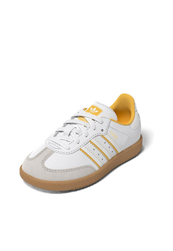 ADIDAS KID Originally designed as an indoor football trainer in the 1950s, the Samba has become an iconic style worn by people of all ages and all walks of life. These infants’ Samba OG shoes stay true to the original version with a smooth leather upper and gum rubber outsole. A cushioned sockliner helps keep little feet comfortable and elastic laces make them easy to slip on and off.