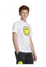Get your smiley on in this juniors’ ADIDAS t-shirt. Made in collaboration with The Smiley Company, it shows off a sporty smiley face on the front that’s bound to brighten your day. The soft cotton build combines with a classic fit to keep things casual no matter how you style it.