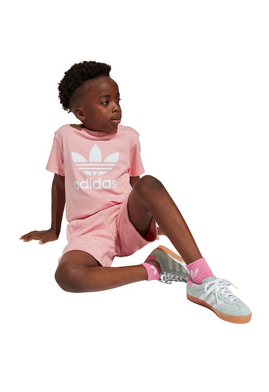 This kids’ ADIDAS shorts and tee set features a soft cotton single jersey build and a drawcord elastic waist for all-day comfort. From the oversized Trefoil on the chest to the 3-Stripes running down the legs its rooted in sport and style. Destined to become a go-to warm-weather outfit, this casual set is an everyday all-in-one outfit that’s ready when they are.