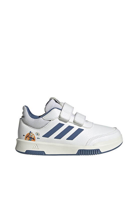 ADIDAS KIDS Introducing the Adidas Disney Mickey Tensaur Sport Shoes, designed for kids who love to run and play. These shoes feature a regular fit and are crafted from textile and synthetics, ensuring durability for all-day wear. The non-marking rubber outsole provides grip while the hook-and-loop closure ensures an adjustable fit. Adorned with a playful Goofy graphic, these shoes are perfect for everyday wear and play.