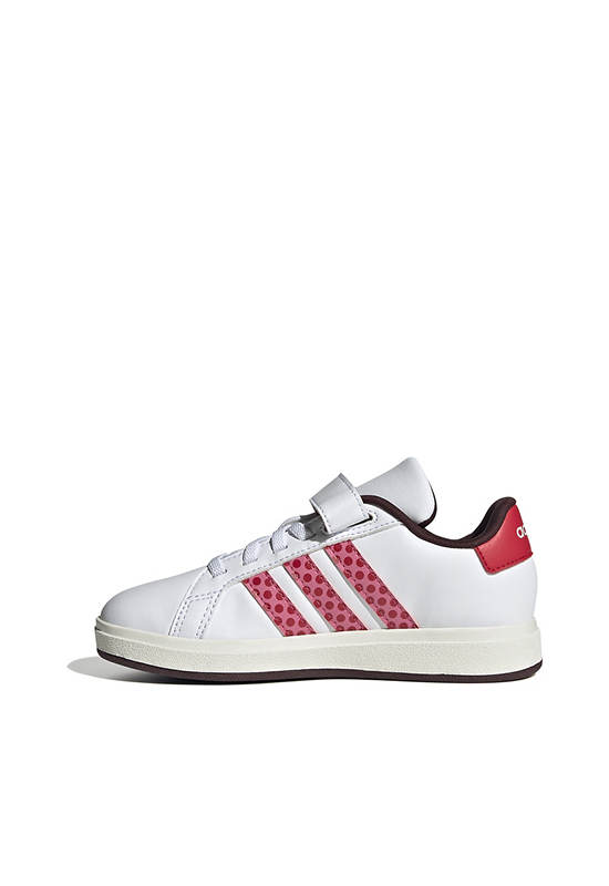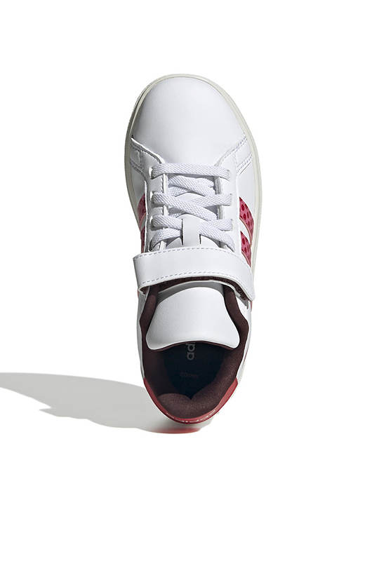 ADIDAS KIDS Introducing the adidas Disney Minnie Grand Court 2.0 Shoes, designed for children who love to play and make a statement. These unisex shoes are a reinvention of adidas’ most iconic sportswear court model, now with the softest sole ever for infant comfort. The upper is composed of textile and synthetics, providing durability while the rubber outsole ensures grip during playtime. The shoes feature an easy-to-use elastic lace and hook-and-loop closure system. With Minnie Mouse printed on the sidewall and polka dots adorning the 3-stripes, these shoes bring fun and style to any outfit. Perfect for street wear or play, they offer regular fit and are sure to be a hit with any Disney fan.