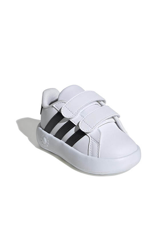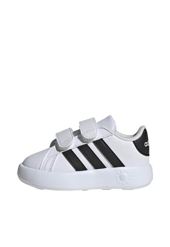 Infants’ Shoes with a Bubbly Sole, Made in Part with Recycled Materials. If your infant could talk, they’d tell you how much they love these ADIDAS Grand Court shoes! Hook-and-loop straps make slipping these on a cinch, while the bubbly EVA sole keeps little growing feet happy. Whether they’re crawling, cruising or taking their first steps, the fun colours and classic 3-Stripes will inspire a lifetime of play.