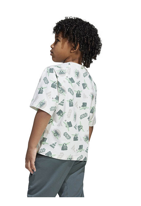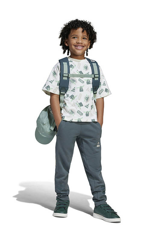ADIDAS KIDS Embark on a galactic adventure with the adidas Star Wars Mandalorian T-shirt. This unisex, loose-fitting tee is made with Better Cotton and elastane, offering both comfort and style. Celebrating the iconic Star Wars series, the shirt features a colourful Grogu print and an adidas | Star Wars lock-up. Perfect for any fan, this T-shirt combines the thrill of the outer reaches of the galaxy with the comfort of home.