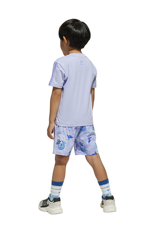 Young fans of Disney’s Lilo & Stitch are all set for adventure in this kids’ tee and shorts set from ADIDAS. Stretchy cotton fabric keeps them comfortable whether they’re exploring the backyard or curling up for story time. A puff-print graphic on the tee and an allover print on the shorts keeps the fun going.