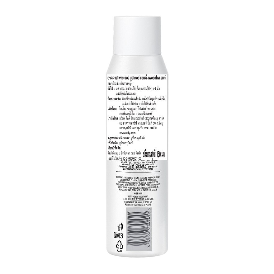 Adidas Power Booster Body Spray For Female Anti Perspirant Adidas Is No.1 The Undisputed Global Beauty Brand For Sport Lovers. Our Fragrances Aim To Elevate Performance And Self-Expression To Help Athletes Make A Difference In Their Game, Their Life And Their Community. Adidas Power Booster Body Spray Female Is 72 Hours Anti-Perspirant Ultra Protection Enriched With Caring Agent, Body Response Tech Heat Activated Effective Protection, Packaging With Modern Design, Friendly For All Users And Have More Confidence When Using Adidas Products Usage Spray Underarm Area And Body External Use Only Flammable.