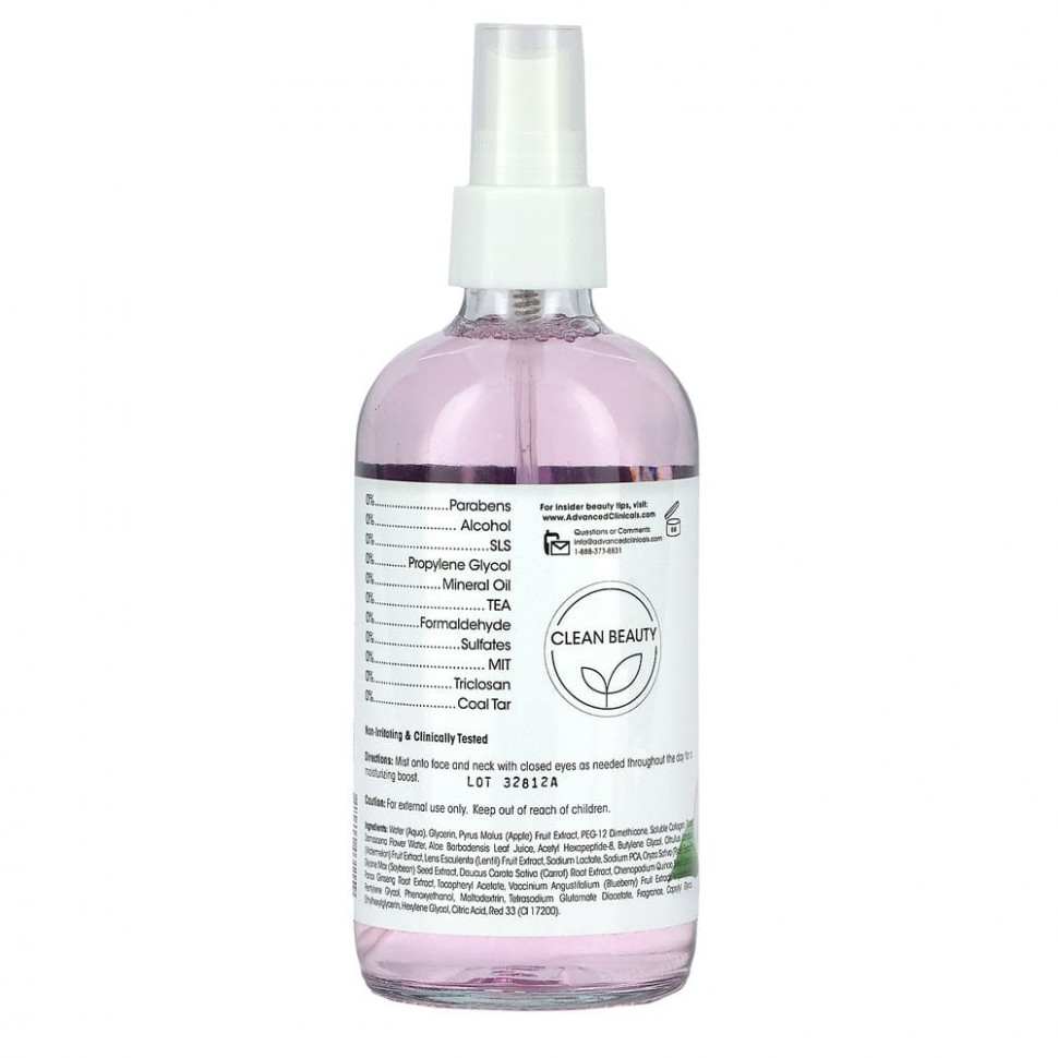 Спрей для лица от Advanced Clinicals с коллагеном и розовой водой возвращает коже сияние и помогает ей удерживать влагу. Коллаген необходим для придания коже упругости и юношеской пухлости. Этот легкий спрей с арбузом и пептидами можно использовать в любое время дня и ночи, чтобы придать коже мягкость и увлажненность. Натуральная розовая вода подарит вам свежесть и сияние молодости. Кроме того, наш спрей для лица не оставляет жирных следов.