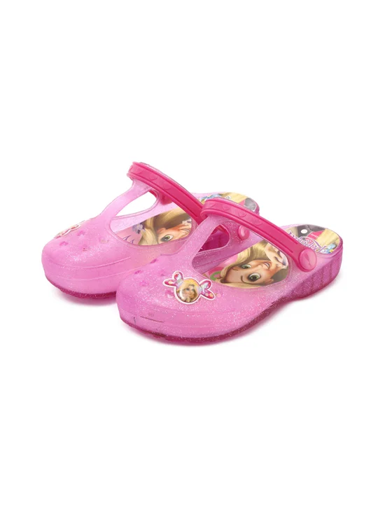 Her little feet will be in the bright color when she steps out in these Rapunzel sandals. A lot of hearts decorates the front of the straps that feature PVC material fastening on the adjustable heel strap to ensure a secure fit.