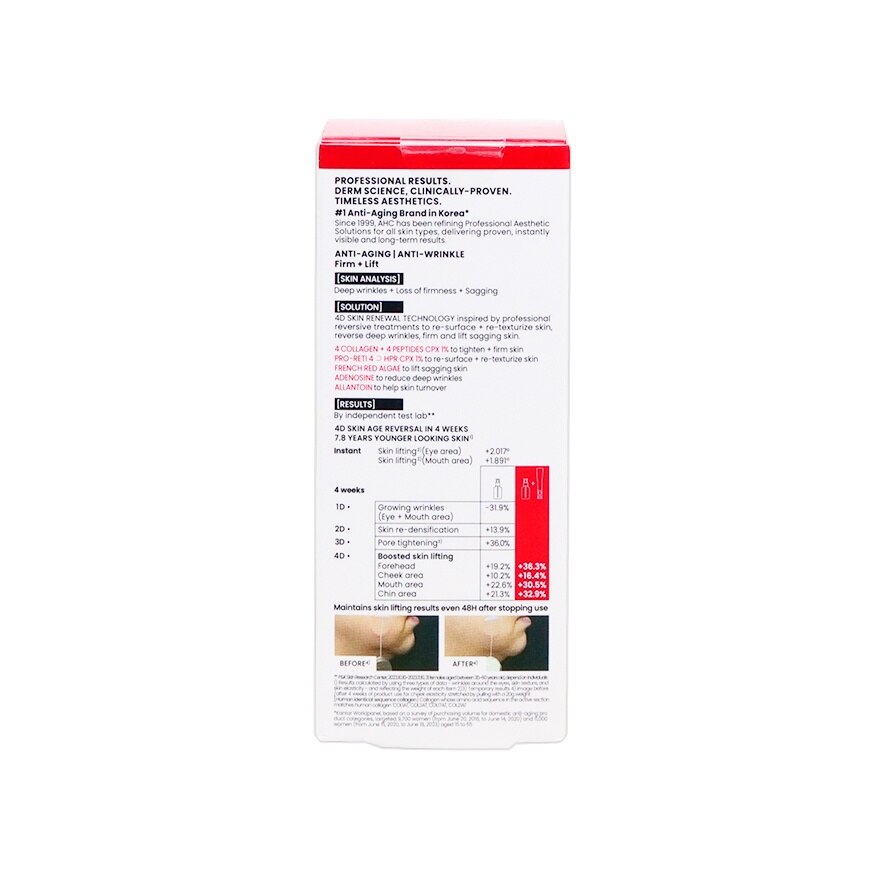 AHC Pro Shot Colla-Juvenation Lift 4 Intra-Serum With Lifting Pro-shot technology from Korea. Lift sagging skin by improving elasticity, deep wrinkles, and skin texture. Your Skin will look younger after 4 week usage.