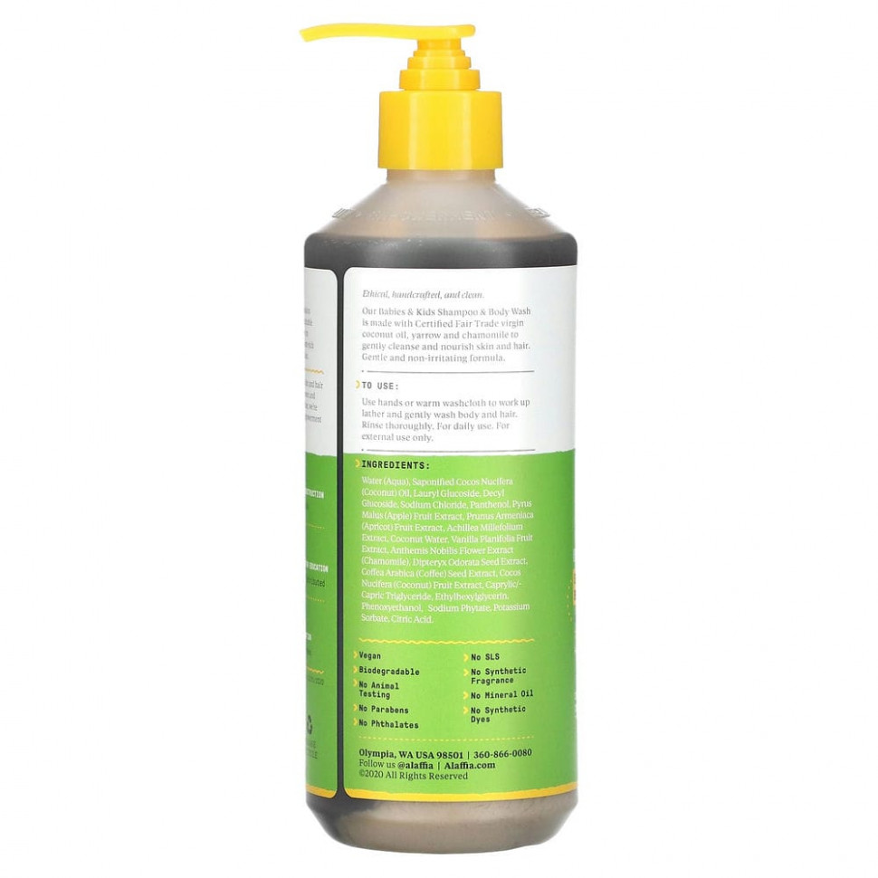 Наш шампунь и гель для душа, изготовленный из кокосового масла первого отжима, успокаивающих тысячелистника и ромашки, приобретенных с соблюдением принципов справедливой торговли, питает и смягчает волосы и кожу. Мягкий не вызывающий раздражения продукт, который подходит для ежедневного применения.