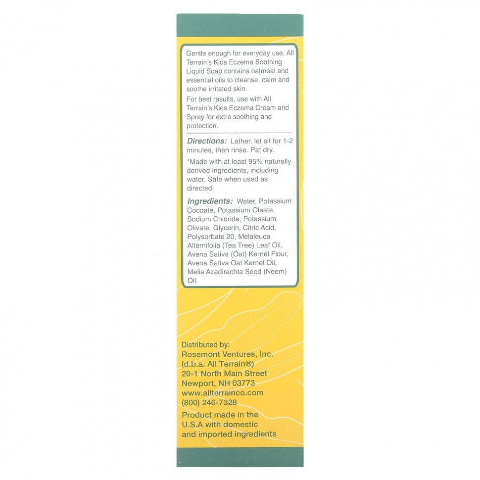 Успокаивающее жидкое мыло от экземы для детей от All Terrain, достаточно мягкое для повседневного использования, содержит овсянку и эфирные масла, которые очищают, успокаивают и успокаивают раздраженную кожу.