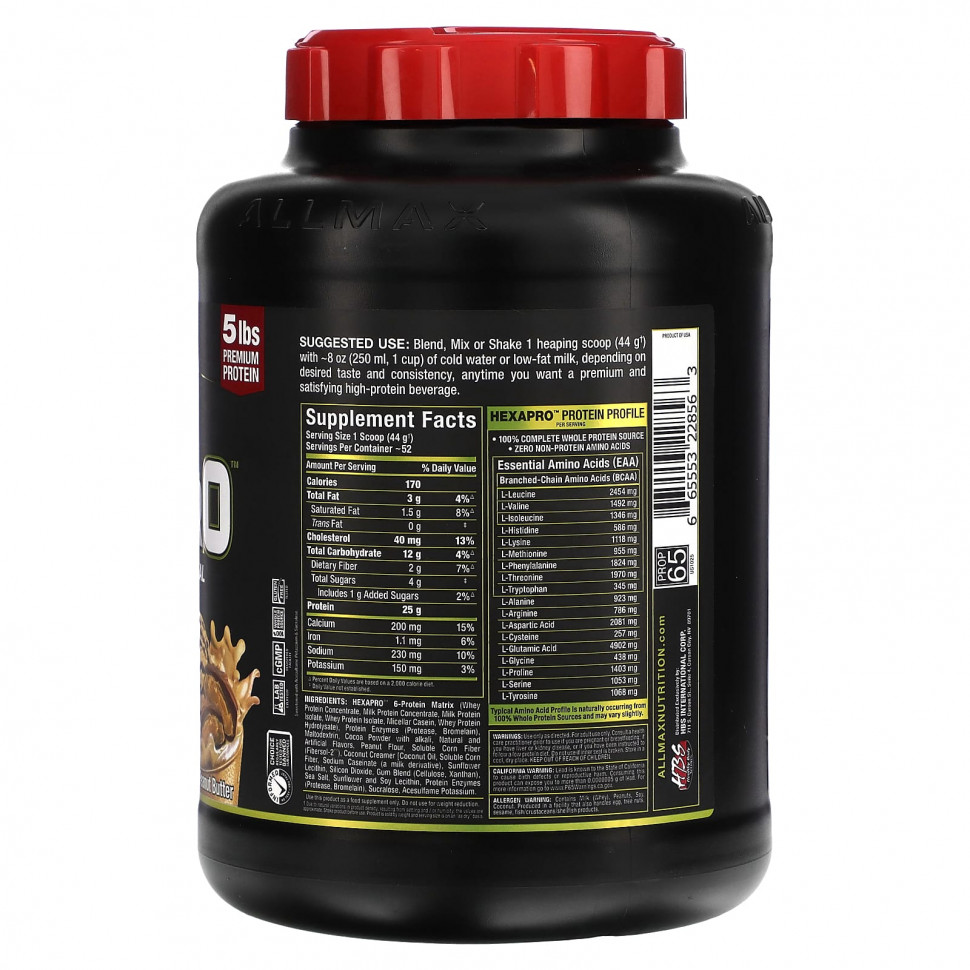 6-протеиновая матрица Hexapro (концентрат сывороточного протеина, концентрат молочного протеина, изолят молочного протеина, изолят сывороточного протеина, мицеллярный казеин, гидролизат сывороточного протеина), белковые ферменты (протеаза, бромелаин), мальтодекстрин, какао-порошок со щелочью, натуральные и искусственные ароматизаторы, арахисовая мука, растворимая кукурузная клетчатка (Fibersol-2 ™), кокосовые сливки (кокосовое масло, растворимая кукурузная клетчатка, казеинат натрия (производное от молока), подсолнечный лецитин, диоксид кремния, смесь камеди (целлюлозная, ксантановая), морская соль, подсолнечный и соевый лецитин, белковые ферменты (протеаза, бромелаин), сукралоза, ацесульфам калия.