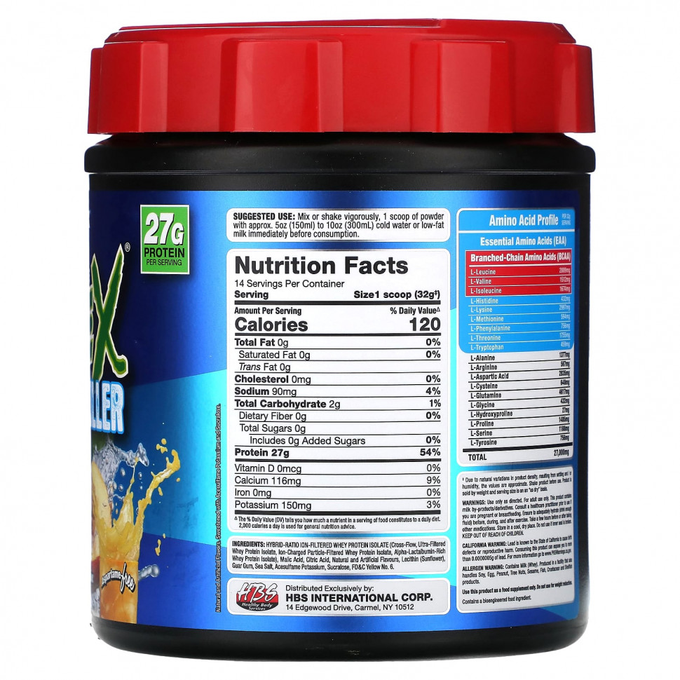 Изолят сывороточного протеина, прошедший гибридную ионную фильтрацию (ультрафильтрованный поперечным потоком, микро-фильтрованный поперечным потоком, изолят сывороточного протеина, прошедший фильтрацию ионно-заряженными частицами, изолят сывороточного протеина с альфа-лактальбумином), яблочная кислота, лимонная кислота, натуральные и искусственные ароматизаторы, лецитин (подсолнечный), гуаровая камедь, морская соль, ацесульфам калия, сукралоза, FD&C желтый № 6.