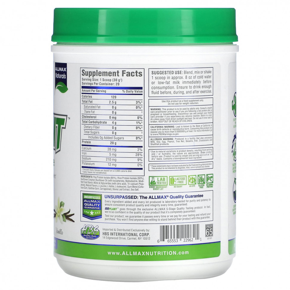 6G BCAAS — растительные белки от природы содержат мало аминокислот с разветвленной цепью, которые необходимы для роста и восстановления мышц. ‡ Каждая порция ISOPLANT ™ содержит 6 г BCAAS (4 г природного происхождения + 2 г с добавлением).