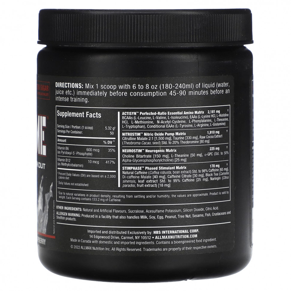 1) Energy — Stimphase™ 4 unique forms of caffeine for extreme, sustained energy that will last for your entire workout.* 2) Mental Focus — Neurostim™ Neuro-cognitive enhancing choline and Alpha GPC for laser focus. 3) Pump — Nitrostim™ A more potent form of Citrulline Malate (2 to 1) than other pre-workouts for increased blood volume and insane veins that turn heads in the gym.* 4) Muscle Power — Actisyn™ More effective than standard protein because all 9 essential (and 4 conditionally essential) amino acids are dosed in a specific ratio designed for your body to build muscle. These amino acids are essential because they cannot be made by your body like other amino acids. If your body is lacking in any one of these EAAs, muscle building will be limited.