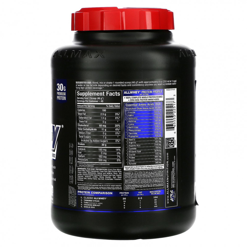 CLASSIC ALLWHEY® — это концентрат сывороточного протеина премиального качества, смешанный с изолятом сывороточного протеина, гарантировано содержащий 30 г протеина в порции весом 46 г! ALLWHEY содержит чистый, полноценный и цельный белок из лучших источников — 100% сывороточный протеин! Попробуйте чистый сывороточный протеин с отличным вкусом и удивительной ценностью. Попробуйте этот исключительный протеин с превосходным вкусом. ПОПРОБУЙТЕ CLASSIC ALLWHEY?!