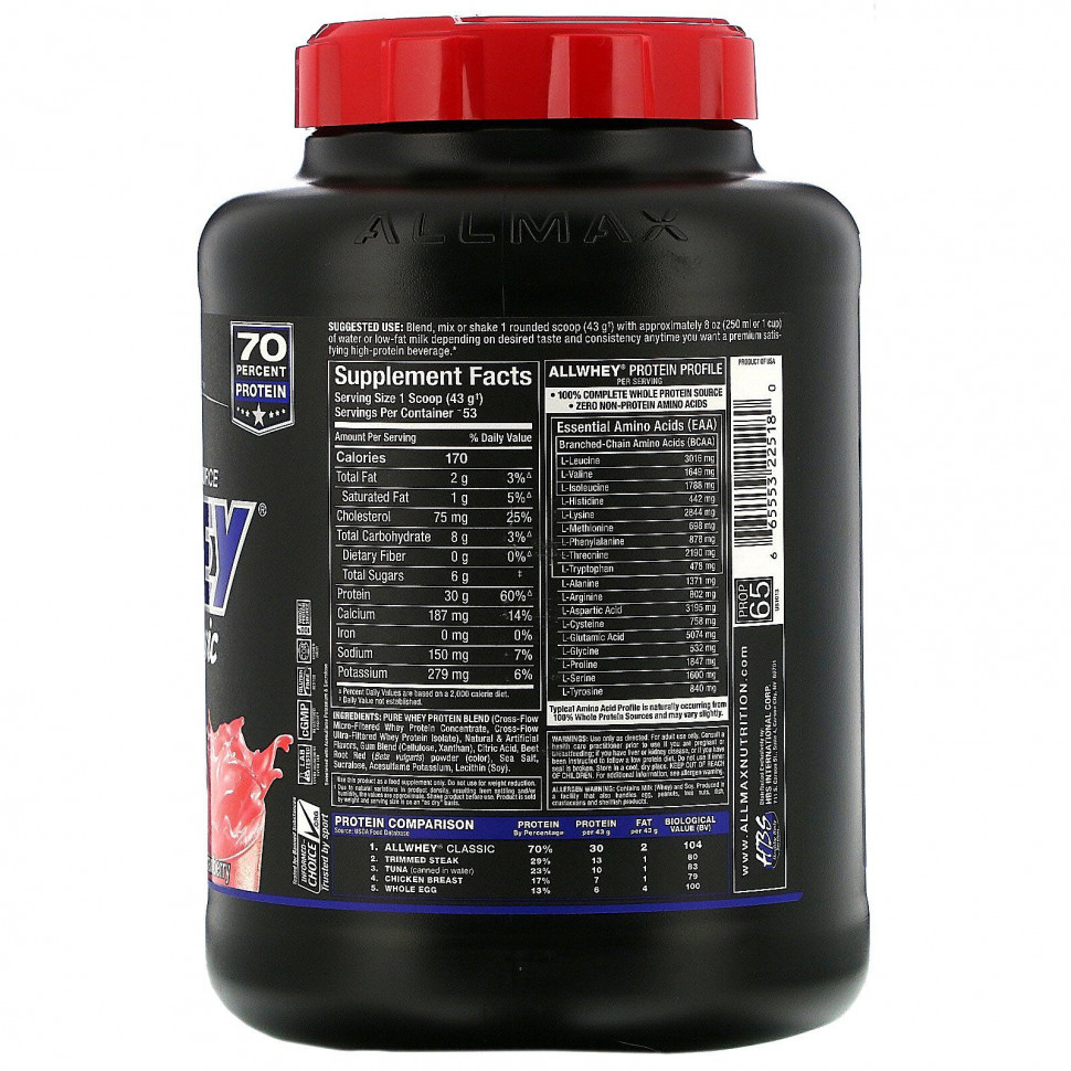AllWhey Classic — это концентрат сывороточного протеина высокого качества и изолят сывороточного протеина, которые обеспечивают 30 г протеина на порцию размером 43 г, т. е. 70%! AllWhey производит чистый, полноценный и цельный протеин, полученный из лучшего источника, 100% сывороточный протеин!
