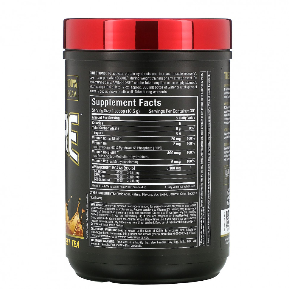 Преимущества использования Allmax Aminocore Не все BCAA одинаковы. Aminocore содержит 8,18 г BCAA в соотношении 9:6:5, что, как подтверждается клиническим исследованиями, обеспечивает увеличение активации сигналов мышечного роста на 350%! Самый чистый, свободный источник BCAA — Aminocore — не содержит наполнителей или аминокислот с неразветвленными цепями. До добавления ароматизаторов аминокислоты BCAA Aminocore в соотношении 9:6:5 абсолютно чистые. Обычные источники аминокислот в соотношении 2:1:1 содержат посторонние включения. Это приводит к помутнению, образованию масляной пленки, осадка и, что хуже всего, горькому вкусу! Aminocore — самая чистая и самая вкусная добавка BCAA без примесей, которую можно купить за деньги!